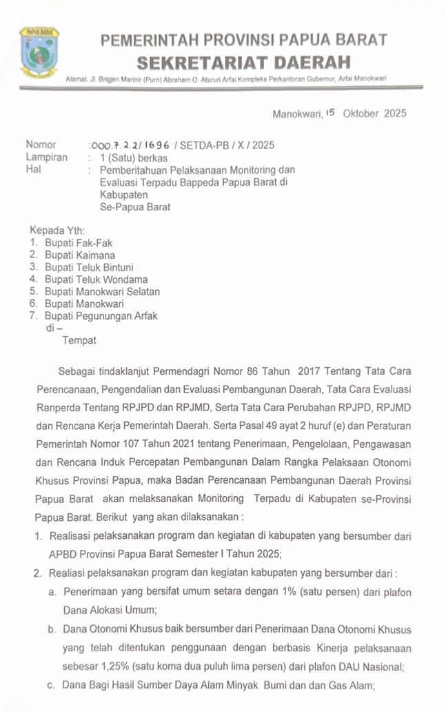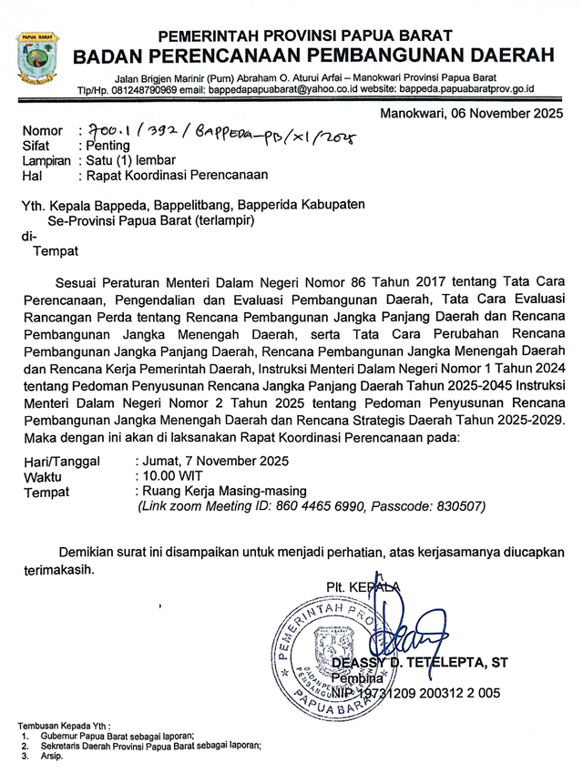 Plt. Kepala Bappeda Provinsi Papua Barat, Deassy D. Tetelepta, ST, [...]