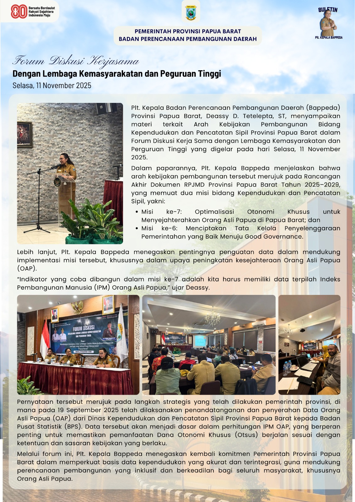 Plt. Kepala Bappeda Papua Barat Paparkan Arah Kebijakan Pembangunan Bidang Kependudukan dan Pencatatan Sipil